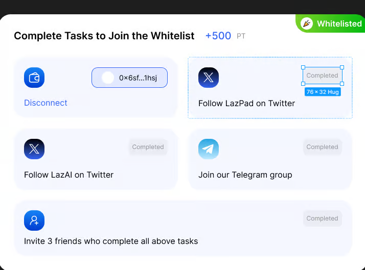 После завершения всех задач ваш адрес кошелька будет помечен как «добавленный в белый список».