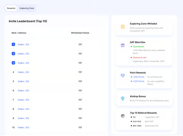 Пользователи могут зарабатывать баллы, взаимодействуя с DAT каждый день. После достижения определённых баллов будут разблокированы новые коды приглашений DAT.