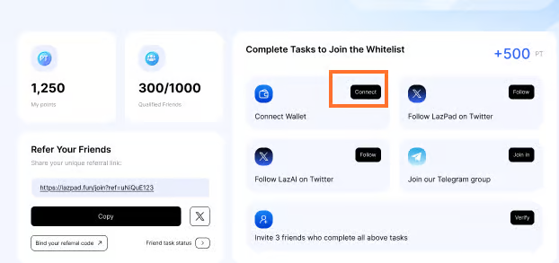 Шаг 1: Посетите страницу мероприятия LazPad и подключите свой кошелек.