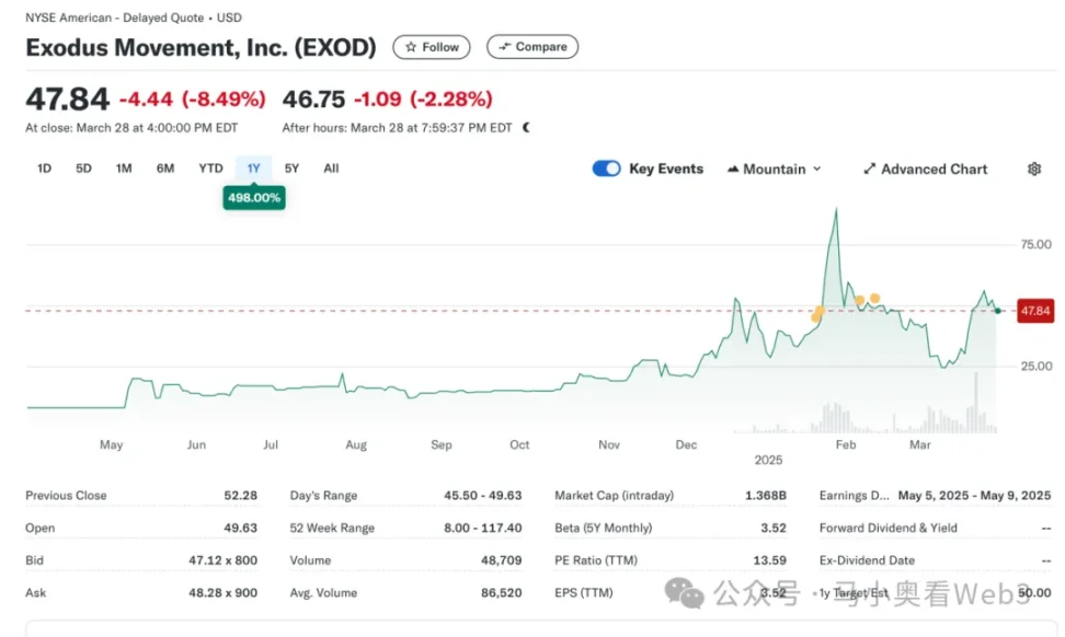 Это событие имеет определенное символическое значение, знаменуя собой явное изменение отношения SEC к активам на бирже. На самом деле попытка Exodus выпустить акции на блокчейне не прошла гладко. В мае 2024 года Exodus подала свою первую заявку на токенизацию обыкновенных акций, но поскольку на тот момент политика регулирования SEC не изменилась, план цепочки изначально был отклонен. Однако в декабре 2024 года после постоянного совершенствования технических решений, мер по обеспечению соответствия и раскрытию информации Exodus наконец получил одобрение SEC и успешно завершил токенизацию обыкновенных акций в блокчейне. Это событие также повысило популярность акций компании на рынке, а их цена достигла исторического максимума.