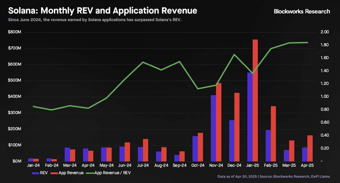 По данным Blockworks Research, совокупный доход всех приложений Solana всего лишь в 1,8 раза превышает доход самой Solana.