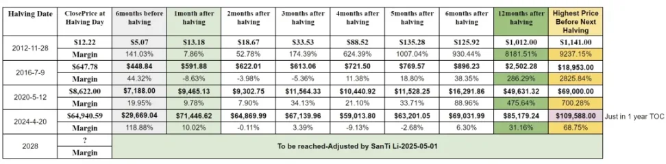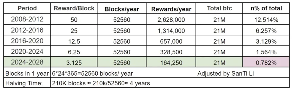 После текущего сокращения вдвое в 2024 году текущий максимум достиг $109 588, что на 68,75% больше, чем в день сокращения вдвое, и пока не вошел в стадию экспоненциального всплеска. Это правило действует только до конца этого раунда, поскольку после этого раунда, если BTC сможет достичь значения в 300 000–500 000 или даже 1 миллиона, то его оценка будет очень большой. Следующее сокращение вдвое не произойдет, если только опорная точка не обесценится или исследование приложения не будет расширено еще больше, например, исследование межзвездного пространства. В противном случае будет сложно добиться кратного роста.