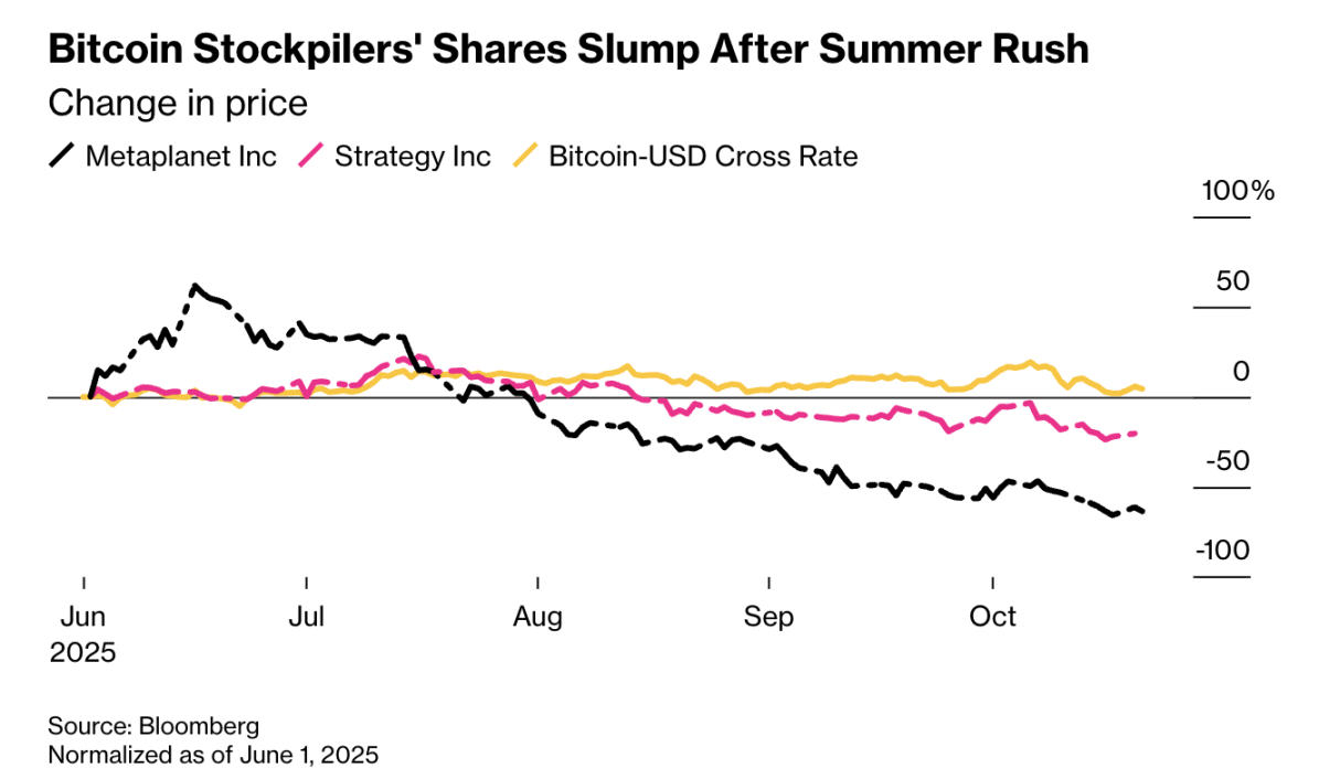 Даже среди японских инвесторов криптовалюты появляются признаки напряженности. MSCI, один из крупнейших мировых индексных провайдеров, недавно предложил исключить крупные компании, занимающиеся казначейскими инвестициями в цифровые активы (DAT), из своих глобальных индексов после расследования международного размещения акций Metaplanet на сумму 1,4 млрд долларов в сентябре. Metaplanet присоединилась к индексу MSCI Japan Small Cap в феврале и заявила, что направит большую часть выручки на покупку биткоинов. С тех пор компания приобрела еще 10 687 токенов. Metaplanet не ответила на запрос о комментарии.