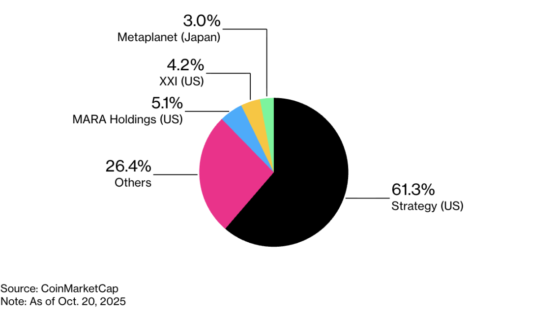 6 октября биткоин достиг рекордного максимума в $126 251, увеличившись за год на 18%. Этот скачок во многом обусловлен появлением большого числа компаний, специализирующихся на накоплении биткоинов. Модель, впервые предложенная MicroStrategy, биткоин-гигантом стоимостью $70 млрд во главе с Майклом Сэйлором, породила сотни последователей по всему миру. Рыночная капитализация многих из этих компаний превышает их совокупный объём криптовалютных активов, что свидетельствует о высоком спросе со стороны инвесторов.
