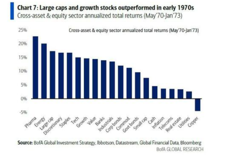 Как и в эпоху Никсона, за смягчением денежно-кредитной политики и бумом 1970–1972 годов последовала безудержная инфляция и обвал рынка в 1973–1974 годах. Он напомнил, что этот бум завершился резким ростом инфляции с 3% до 12% и падением американских акций на 45%.