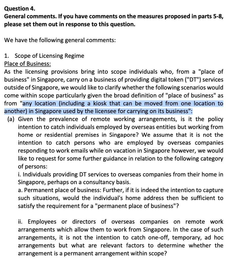 В ответ на эту проблему Baker McKenzie направила свой отзыв в MAS в документе