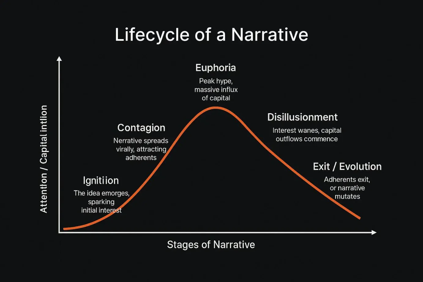 Когда рынки накаляются, повествование становится важнейшим фактором распределения капитала. Не официальные документы, не балансы, а убежденность.
