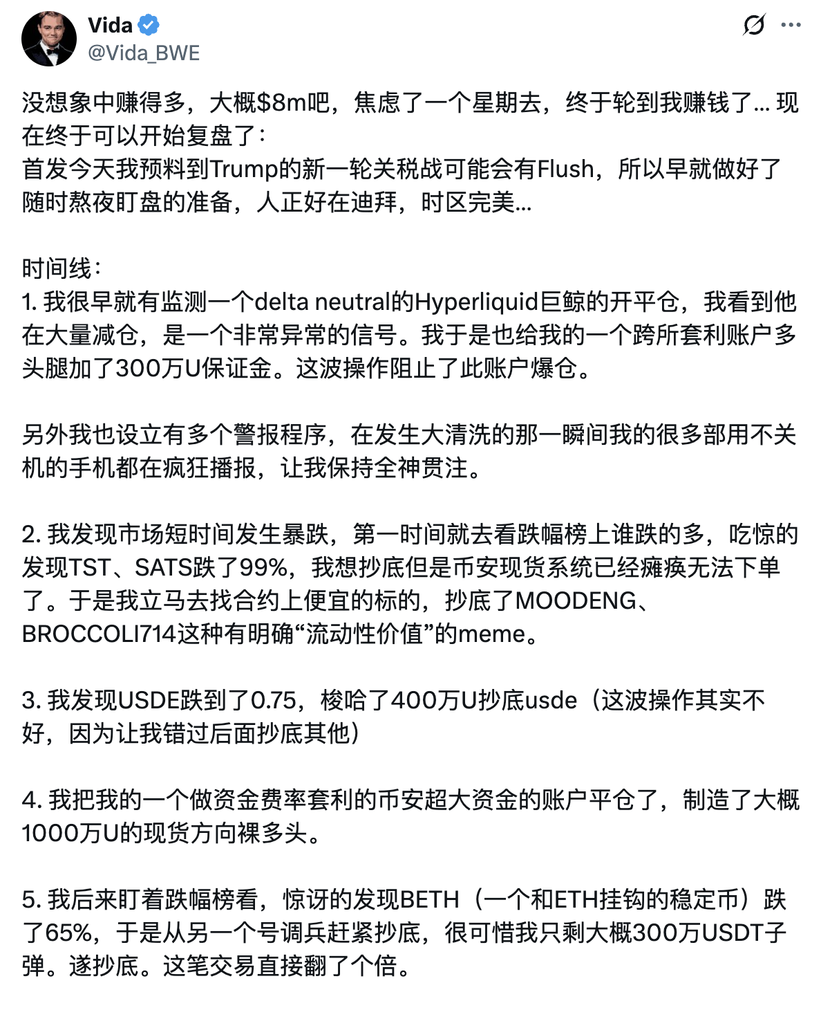 После относительного восстановления рынка многие KOL начали хвастаться своей прибыльностью на X Mingpai. Например, Вида (@Vida_BWE) прямо сообщил, что его прибыль за ночь составила около 8 миллионов долларов США.