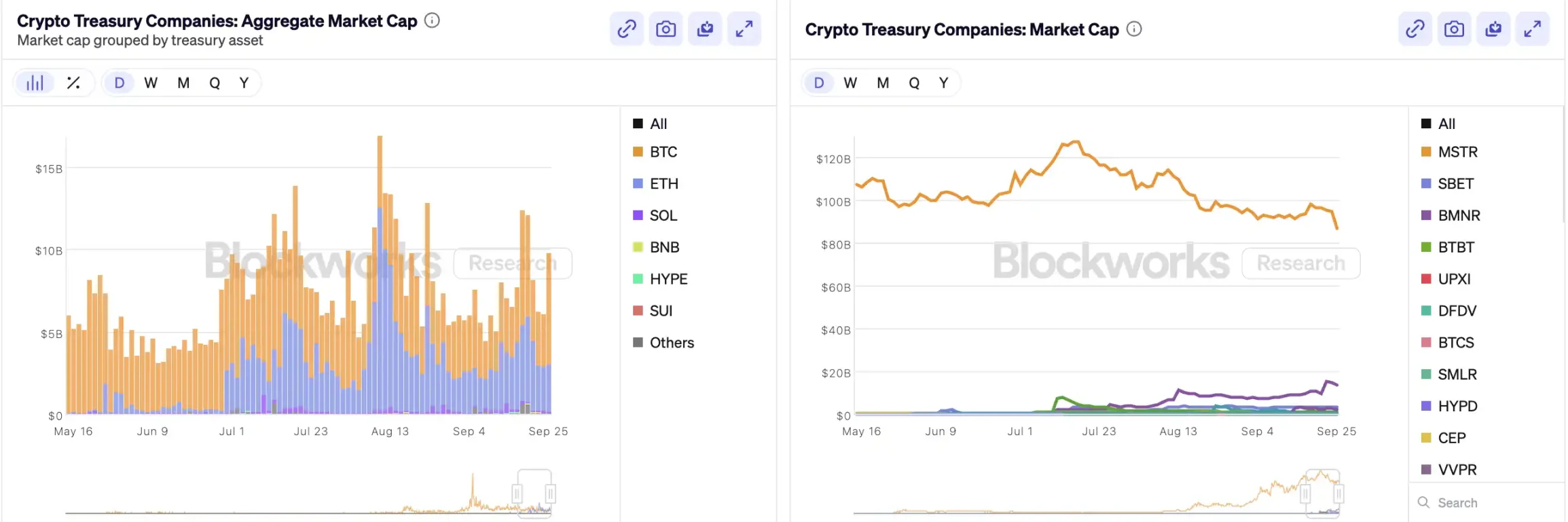 Однако, хотя эта ажиотаж вокруг капитала и привела к росту цен, она также породила всеобщий скептицизм. Коэффициент mNAV (рыночная капитализация к чистой стоимости активов) компании MSTR за месяц упал с 1,6 до 1,2, в то время как у двух третей из 20 крупнейших компаний, занимающихся казначейством криптовалют, этот коэффициент ниже 1. Растут опасения по поводу пузырей активов и инсайдерской торговли, и эта новая тенденция распределения активов в настоящее время сталкивается с беспрецедентными проблемами регулирования.