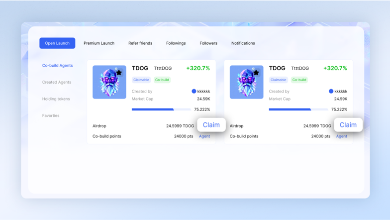 После активации ваши токены будут запущены вместе с AI Agent , что позволит вашему сообществу совместно развивать и получать награды.