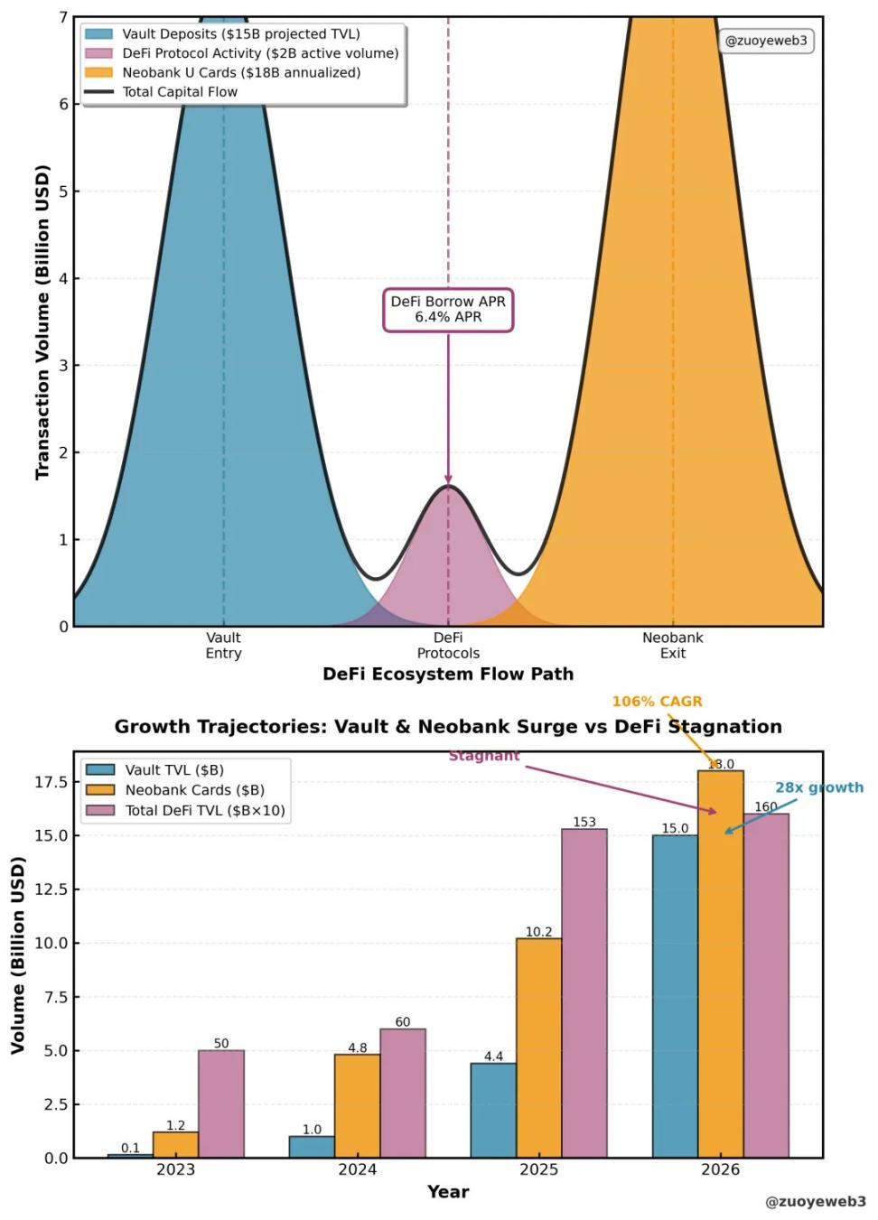 - Исходя из текущей ситуации в 2026 году, фактический поток пользователей выглядит следующим образом: Обмен USDC через CEX или банковскую карту -> Поиск хранилища с более высокой годовой процентной доходностью (APY) -> Использование карты Neobank U-card для совершения покупок.