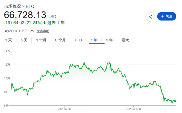 2 марта, согласно сообщению Bloomberg, маркет-мейкер Wintermute, ссылаясь на данные JPMorgan Chase, сообщил, что средства розничных инвесторов неуклонно перетекают на фондовый рынок с конца 2024 года, и эта тенденция значительно ускорилась после обвала криптовалютного рынка в октябре прошлого года. Цена биткоина упала почти вдвое с исторического максимума примерно в 126 000 долларов и в настоящее время торгуется около 66 000 долларов, в то время как фондовые индексы продолжают расти.