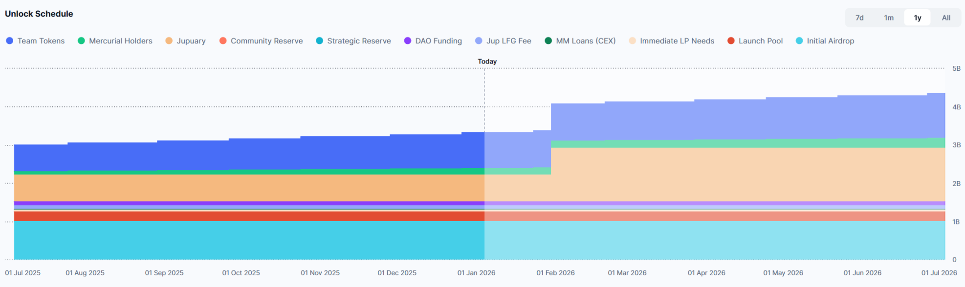 Ситуация усугубляется тем, что 31 января этого года будет разблокировано 700 миллионов токенов JUP (10% от максимального объема предложения), стоимость которых составляет 147,88 миллионов долларов. Когда давление покупателей ослабевает, а давление продавцов становится огромным, цена токена предсказуема.